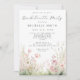 This design features a delicate watercolor illustration of wildflowers in shades of green and pink.