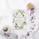 Elegant winter floral wedding invitations featuring your wedding details displayed in dark green lettering nestled inside of a boho floral and gold foil frame with a sage green background. The winter flowers feature a colour palette of dusty rose, light pink, ivory, and soft golden yellow with eucalyptus leaves and winter foliage in shades of sage green and rich forest green.