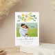 Delicate watercolor yellow flowers decorate this lovely summer afternoon Save the Date card above your engagement photo. The garden wedding card has botanical leaves underneath the elegant sunny peonies above your favorite couple photograph. Floral and light, perfect for an outdoor ceremony.