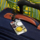 I was happy with the acrylic tag but it came with a thin leather strap to attach the tag to luggage (like a cat collar). I replaced the strap with a metal ring off of a key ring as the leather strap would come undone or break easily as luggage is sometimes handled without much care by airlines. Printing is great. Colours and positioning of the design I put on the tag were perfect. Very pleased.