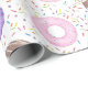 Make your party gift extra sweet with donut wrapping paper! Available on a blue or a white background, this design features 3 flavors of hand drawn donuts: chocolate, pink with sprinkles, and purple with thick icing (yum). Multicolor sprinkles fill in the gaps between the donuts. The donuts were drawn with ink, watercolor pencil, and colored pencil.