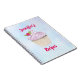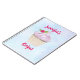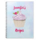 Record your favourite recipes in this spiral notebook. Personalised with your name in a cute trendy font. Designed with an illustration of a delicious cupcake with pink swirls and a berry with leaves nestled in the frosting. Set on a light blue pastel watercolor background.