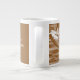 This lovely big coffee mug features original art of a coffee cup overflowing with creamy foam, and in beautiful coffee and cream colours. On the other side is a cute quote about coffee which you can customise.