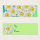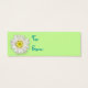 Crisp white daisies with sunny yellow centres pop on a background of turquoise and spring green. The front has an overall design; the back has a single daisy on a lighter green background, with words in deep turquoise.