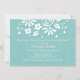 A crisp, delightful invitation with a light blue-green, striped background and "embossed" whimsical flowers. Well-suited for any feminine celebration.