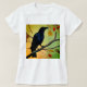 This is a beautiful fun Raven perched on a woodland tree branch.