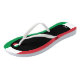 Delightful Italy Flag Colours Patriotic Flip Flops. Minimalistic design incorporates black background surrounded with the array of colours present on the Italy flag. Small hearts infused with the Italy flag pattern are placed on the toe position. Design is finished with the country name written on the bottom of the flip flops. Heart and text with the country name are fully customisable by using "Customise it!" feature. You can resize, reposition or even remove them. Before the click on the "Add to Cart" button do not forget to choose the wide or slim flip flops and change the footbed or strap colour to your liking. This adorable sandal design is sure to make your feet happy! © 2023 CountriesOfTheWorld