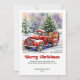 Bring the heartwarming magic of the holidays to every mailbox with this charming Christmas greeting card featuring a watercolor red truck Christmas scene in a cozy rustic style. Inspired by classic holiday nostalgia, this design blends soft watercolor textures, a vintage red truck, festive greenery, and a serene seasonal backdrop to create a warm and welcoming atmosphere. The classic red and green color palette paired with bold playful lettering adds a cheerful touch that feels both timeless and modern.