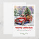 Delightful Rustic Red Truck Winter Scene Holiday Card