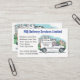 Courier Business Cards. Delivery Services Business with Name on a Company Van. Colour illustration of a driver at the wheel of a white van. Illustration appears on both sides of the business card. Delivery man and van calling-card.