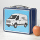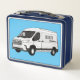This is a standard metal lunchbox that appears to work just fine. We designed this box ourselves with an uploaded photo and custom text on the front and back. It looks absolutely beautiful except the front of the lunchbox is not centered like it shows in the photo. The print borders don't align with the inset flat part of the box where the preview photo online showed it perfectly centered in there. The back looks nice and centered though.