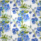 Delphinium botanical art blue green white fabric