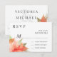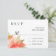 Custom 2-sided Wedding RSVP Reply Template. Abstract peachy orange flowers on white background with wispy green leaves and whimsical swirls border this beautiful wedding invitation set. Click Customise It to change the font colour, size, style, or background, Simple but stylish elegance at bargain discounts and affordable prices for frugal brides on a budget. Please contact us if you would like this design modified to match your bridal party colour theme.