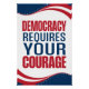 "Democracy requires your courage" is more than a phrase—it’s a call to action in a moment when America’s future is on the line. This design amplifies your voice as an activist dedicated to defending freedom, rejecting authoritarianism, and driving out Trump and his corrupt enablers.
