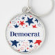 This keychain is shown with a stars and stripes art print design with democrat text.