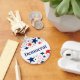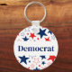 This keychain is shown with a stars and stripes art print design with democrat text.