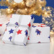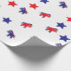 Red, white and blue Democrat donkey with stars on white seamless wrapping paper.