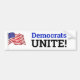 Democrats stand together! "Democrates UNITE! " in bold, blue & black, modern font next to waving American flag conveys that message loud and clear!