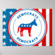 A bold, patriotic Democratic Party emblem featuring the classic donkey symbol, crisp stars, and red‑white‑blue detailing—perfect for political‑themed designs, merch, or event materials.