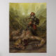 Victorious, after a long battle with demons and imps, the red haired Demon hunter stands over her vanquished foe. Oil on panel