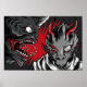 Unleash the beast with this intense "Dual Monster Confrontation" design, featuring two formidable, demonic-inspired creatures in a dynamic and striking composition. On the left, a snarling beast with razor-sharp teeth, dripping drool, and piercing red eyes dominates the frame. On the right, a horned, mysterious figure with swirling eyes and a menacing gaze completes the terrifying duo. The contrasting red background highlights the explosive energy between them, set against a dark, textured backdrop.