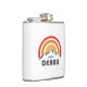The flask itself is fine. It’s a cheap flask, obviously bought in bulk, however am prepared to overlook that. Given that it is a personalized item, I would have liked to have seen gift boxing instead of the generic packaging. Terrible printing, and/or quality. It’s a cheap, tacky vinyl. It is not cut straight and is also applied in a way that it is overhanging the bottom, causing the glue to catch on items and it will eventually roll and tear, damaging the wrap.