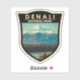 Denali watercolor artwork design. The park has terrain of tundra, spruce forest and glaciers, the park is home to wildlife including grizzly bears, wolves, moose, caribou and Dall sheep.