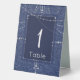 Denim and diamonds table tent decor.