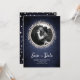 Elegant save the date card featuring a denim background framed with beautiful pearls that you can customise with your own photo