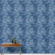 This wallpaper features a watercolor texture in monochromatic tonal shades of navy and denim blue for a cloud-like effect.