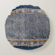 Denim blue jeans fabric frame. Bleached denim fabr Round Cushion
