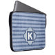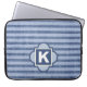 This sporty denim colour stripe patterned laptop sleeve is ready for your personal monogram. Created in shades of navy and faded blue. Choose your size in the drop down menu.