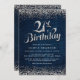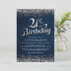 Denim & Diamonds 21st Birthday Party Invitation features the words “21st Birthday” in a stylish typeface with little confetti gems at the top and bottom on a denim background. Perfect to celebrate this milestone event. Design by The Spotted Olive™.