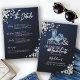 A modern, elegant and classy denim and diamonds bachelorette party theme invitation for a bachelorette weekend party. It features a denim background and rhinestones (this is a digital effect), and typography in white, as well as a denim cowgirl hat with rhinestones (faux) and denim cowgirl boots. On the back, a template for the itinerary details, with modern calligraphy for the title and the ring motif as decoration. A chic, stylish and classy "denim and diamonds bachelorette party theme invitation for a bride on her journey from ms to mrs! Let's go girls! Perfect for a weekend with the bridesmaids, in Las Vegas or on a girls road trip.