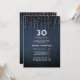 A simple, modern, elegant and chic birthday party invitation template featuring a denim background, diamonds / rhinestones drippings (simulated, not real diamonds) and modern typography in white. A chic "denim and diamonds" design for a woman of any age, on her 21st, 30th, 35th, 40th, 50th, 55th, 60th, 65th, 70th, 80th or 90th birthday!