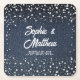 Denim Diamonds Pearls Blue Couple Wedding Shower Square Paper Coaster