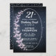A simple, modern, elegant and chic birthday party invitation template featuring a denim background, a boho frame of sparkly pink, iridescent butterflies, rhinestones (this is a digital effect, they are not real rhinestones!) and modern calligraphy script, and typography in white. A chic "denim and diamonds" design for a woman of any age, on her 21st, 30th, 35th, 40th, 50th, 55th, 60th, 65th, 70th, 80th or 90th birthday!