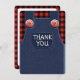 Cute as a button denim baby overalls with buffalo plaid flannel shirt design, flat card thank you to compliment our baby shower invitation.