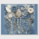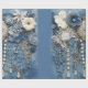 Denim texture graphics decorated with white-cream lace layered with costume jewellery