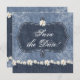 Blue jean denim and roses save the date announcement card.