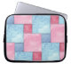 An attractive protective sleeve for your laptop, with a patchwork of pink and blue denim pattern, from a handpainted watecolour design by Judy Adamson.