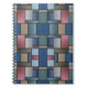 A symmetrical arrangement of textured, fabric-like rectangles in muted tones of blue, green, pink, and beige. The layout resembles a patchwork quilt or mosaic, with each block meticulously aligned to create a balanced, grid-like structure.