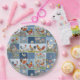 Denim Patchwork With Chickens And Wildflowers Paper Plate