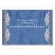 Denim texture backgrounds decorated with white-cream lace and some with light bronze jewel designs and ivory pearls to personalise number and name cards for each quest on the table.