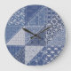 Denim Triangle Patchwork Vintage Texture. Large Clock