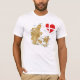 A heart shaped Danish flag is placed next to a relief map of Denmark on this distinctively patriotic t-shirt.