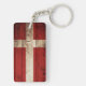 Denmark Flag on Old Wood Grain Key Ring