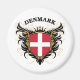 Cool crest design with national flag of Denmark colours and caption: Denmark. Great Danish pride gift.
