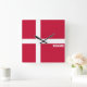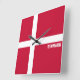 Denmark National Flag Patriotic Square Wall Clock with the country flag in the national colours printed all over the clock. Country name is subtly integrated in the design on the bottom. Text is fully customisable using "Customise it!" feature. This charming design is the stunning gift and the great show piece on the wall . © 2022 CountriesOfTheWorld