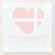 Flag of Denmark pop art heart cutout with retro comic style text on light blue background
